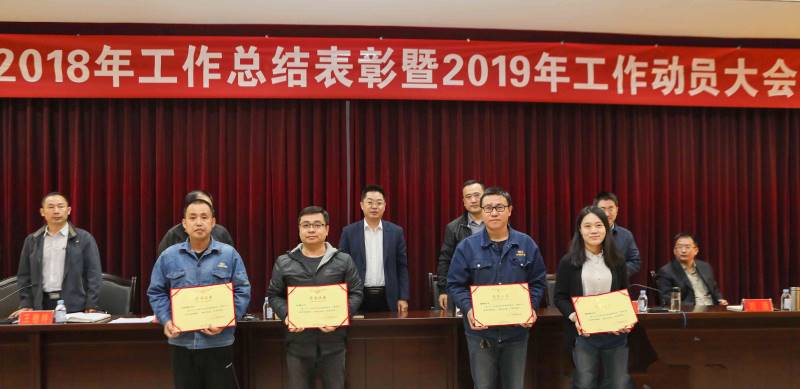 會(huì)上,對(duì)2018年度先進(jìn)進(jìn)行表彰,公司高管為獲獎(jiǎng)?wù)哳C獎(jiǎng),并與他們合影留念。