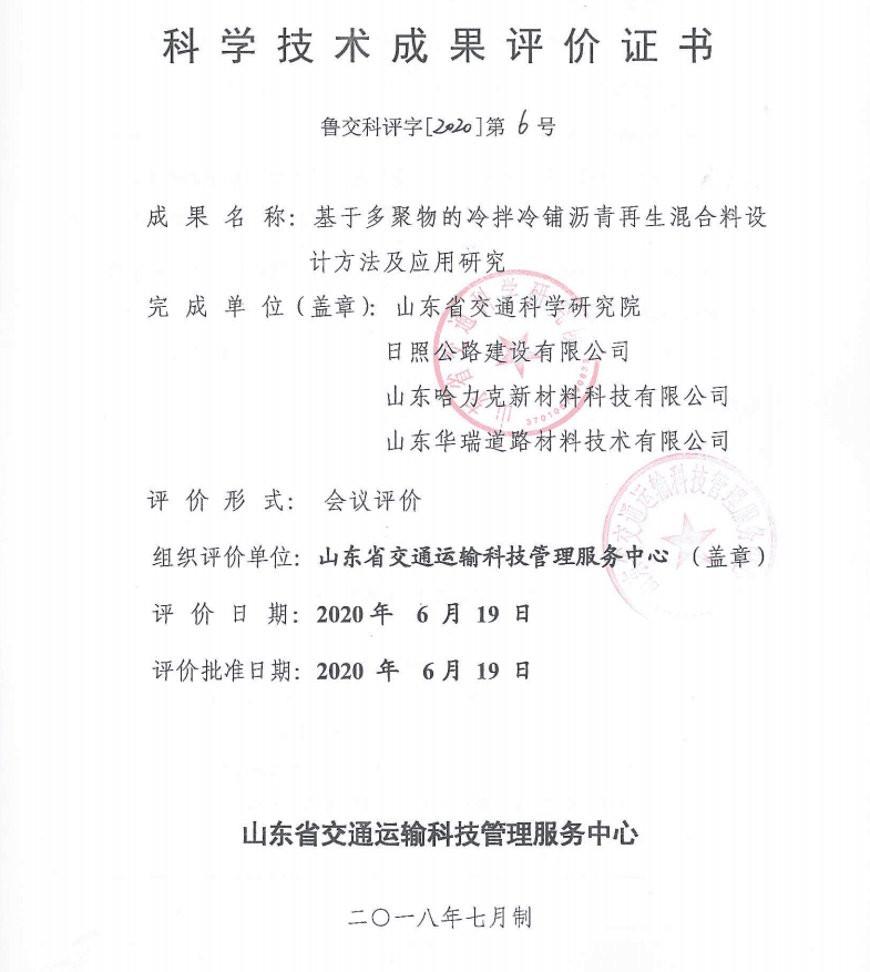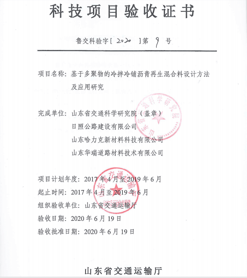 公司冷拌冷鋪瀝青科研項(xiàng)目通過(guò)驗(yàn)收
