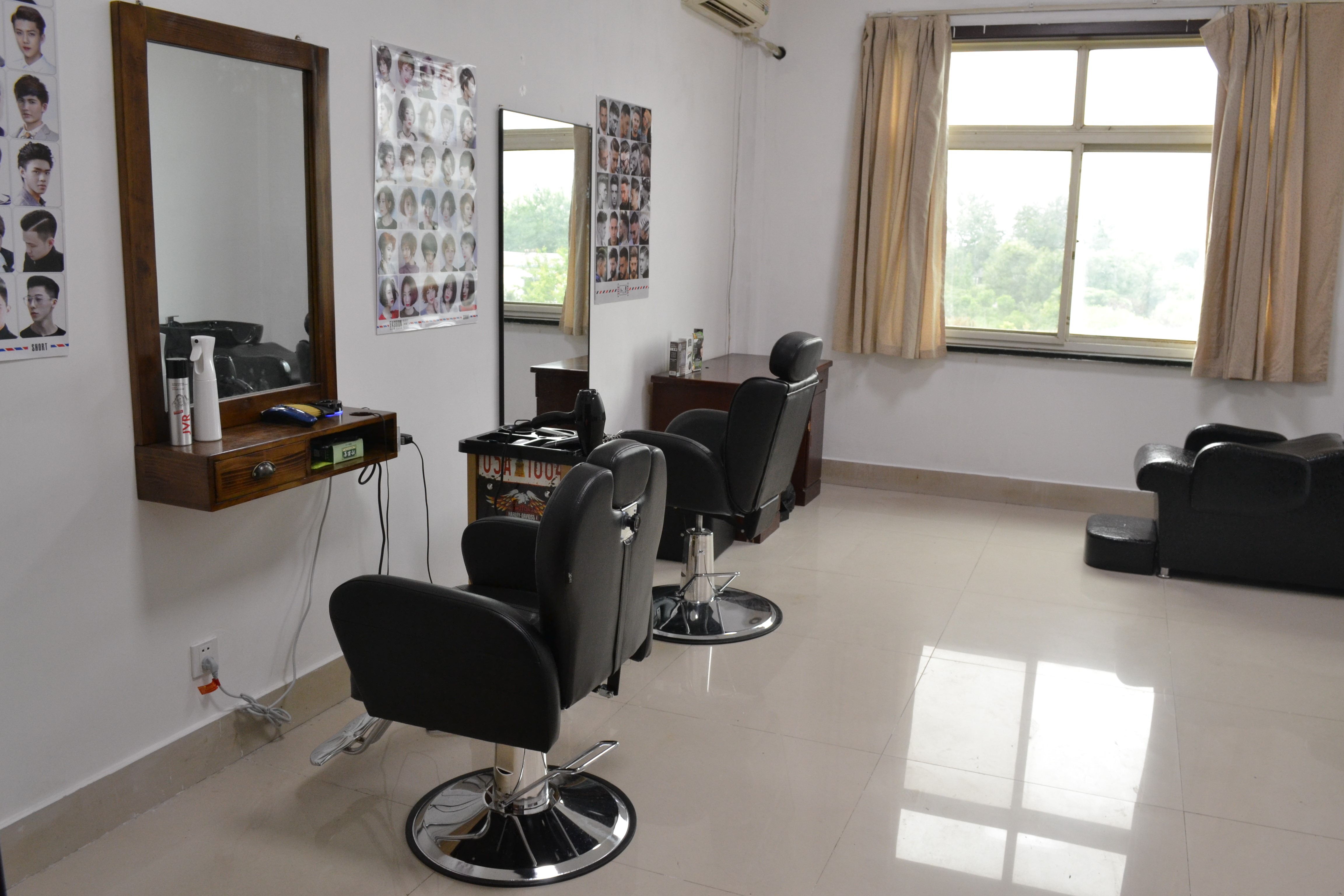 “工欲善其事,必先利其器”。公司按照專業(yè)理發(fā)室的標(biāo)準(zhǔn),專門購置了理發(fā)推、吹風(fēng)機(jī)、洗頭躺椅、熱水器、毛巾架等專業(yè)設(shè)備。