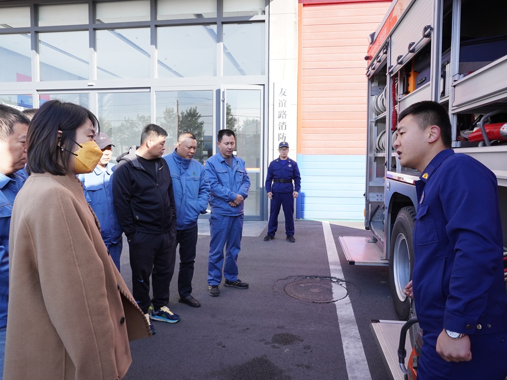 在桓臺縣友誼路消防救援站,消防講解員介紹了各類消防車輛以及搶險救援服、滅火防護服、空氣呼吸器等各種消防救援設(shè)備設(shè)施的用途和使用方法,并帶領(lǐng)職工們進行了試穿滅火防護服、操作滅火高壓水槍以及乘坐云梯消防車體驗。通過隨后的消防站隊史館和消防員內(nèi)務(wù)建設(shè)參觀,使大家了解到消防工作的不易和消防員們的高度自律。